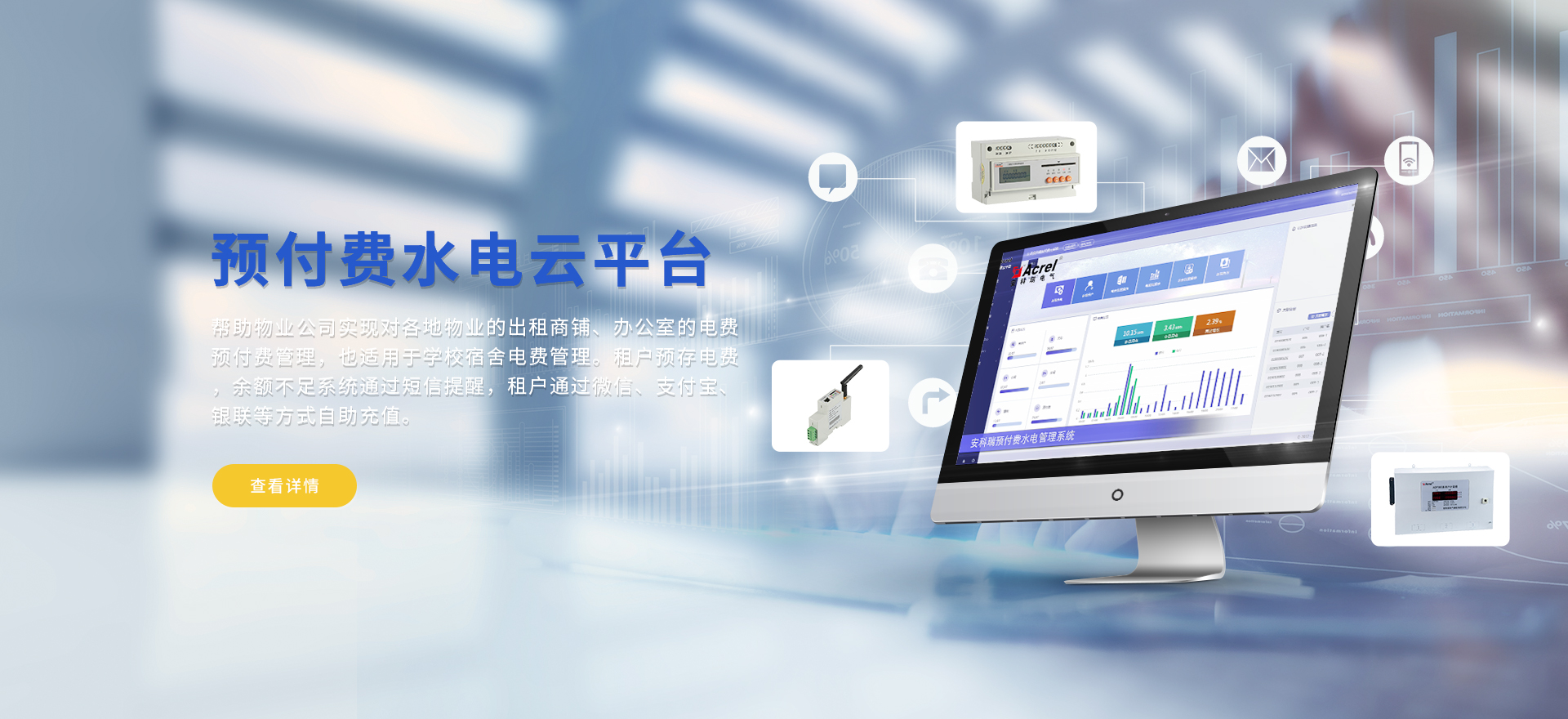 安科瑞提供的解決方案包括Acrel-EIoT能源物聯網云平臺、變電所運維云平臺安全用電管理云平臺、環保用電監管云平臺、智慧消防云平臺能源管理云平臺、工業企業能源管控平臺、遠程預付費云平臺、餐飲油煙監管云平臺、電動汽車/電瓶車充電樁收費管理云平臺、電力監控/無線測溫系統、電能質量治理系統、電氣火災監控系統、消防設備電源監控系統、防火門監控系統、應急照明和疏散指示系統、智能照明控制系統、醫用隔離電源絕緣監測系統等,幫助用戶實現能源智能化、可視化、精細化管理,提高用能效率和用能安全,為企業節能降耗和實現能源數字化建設提供數據服務。